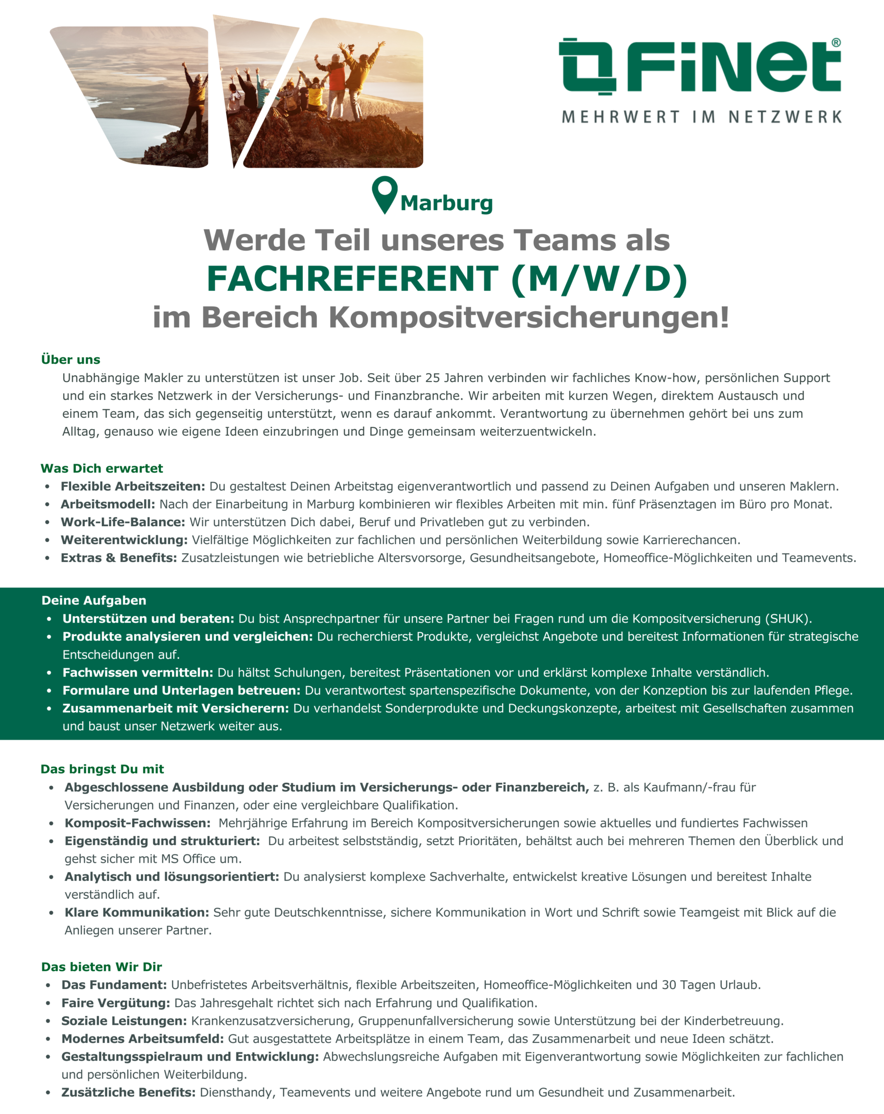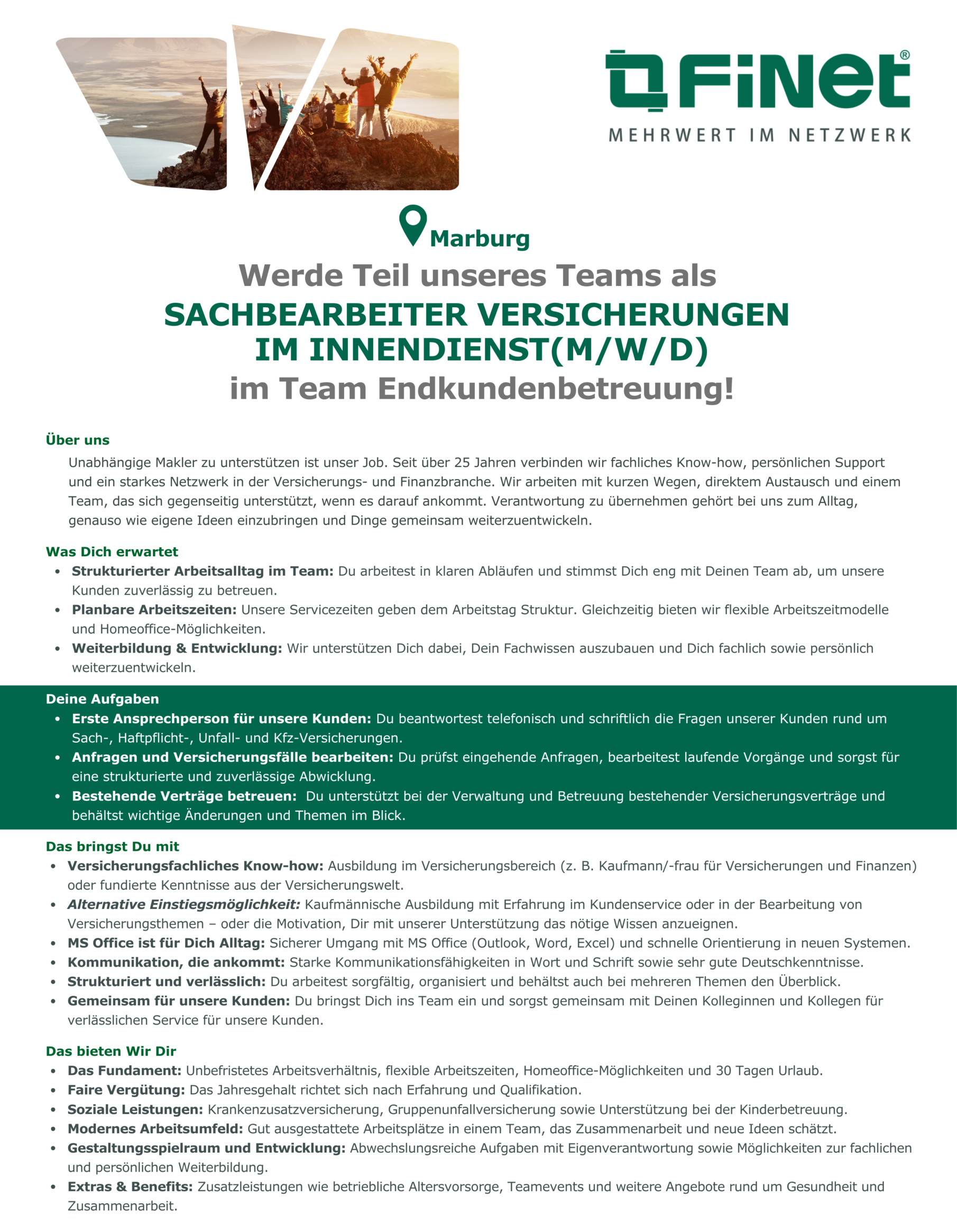 Bist Du auf der Suche nach der nächsten beruflichen Herausforderung? Hast Du bereits Erfahrungen in der Versicherungsbranche? Steht bei Dir der Kunde an erster Stelle? Dann bist Du bei FiNet AG genau richtig! Unsere Mission ist es, professionellen Versicherungs- und Finanzmaklern dabei zu helfen, ihre Kundschaft optimal abzusichern und zu betreuen.