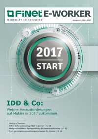 finet e-worker 01 2017 welche herausforderungen kommen auf makler zu? e-worker ausgabe 1/märz 2017 idd & co: welche herausforderungen auf makler in 2017 zukommen weitere themen: finet informationstag 2017 in kassel – s. 10 maßgeschneiderte finanzplanung für medizinerberater – s. 42 fam vermögensverwaltungsstrategien für makler – s. 26