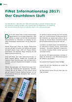 finet informationstag 2017 der countdown läuft news finet informationstag 2017: der countdown läuft die finet lädt am 7. märz 2017 zum finet informationstag ins kasseler kongress palais ein. die teilnehmer erwarten vorträge zu den auswirkungen der pflegereform, zur umsetzung der vertriebsrichtlinie idd sowie zum aktuellen stand in der lebensversicherung. d as fit 2017 bietet ihnen in einem komprimierten tagesprogramm die einmalige gelegenheit, finet intensiv zu erleben und sich über die aktuellsten branchenthemen zu informieren. es erwarten sie vor- träge hochkarätiger gastreferenten und der finet-fach- teams. welche änderungen bringt die jüngste pflegereform mit sich und gibt es wirklich nur vorteile und verbes- serungen? diesen fragen stellt sich thomas winkler, fachreferent und spezialist pflege marketing bei der signal krankenversicherung. unter dem motto „quo vadis lebensversicherung“ re- feriert dietmar bläsing, mitglied der vorstände der volkswohl bund versicherungen, über die marktverän- derungen, die durch regulatorische vorgaben zu stande kommen. welche neuregelungen und herausforderungen kom- men mit der umsetzung der europäischen vertriebs- richtlinie idd auf die makler zu? eine antwort darauf gibt der experte professor matthias beenken von der fachhochschule dortmund, sachgebiet bwl, versiche- rungswirtschaft. an welchen kriterien erkennen sie einen nachhal- tigen und zukunftssicheren krankenversicherer? die antworten auf diese frage erfahren sie im vortrag von thomas wesel, fachreferent biome- trie & krankenversicherung bei der finet ag. leo martin, ex-geheim-agent und bestseller-au- tor beleuchtet in seinem vortrag „geheimwaffe vertrauen – die kunst, menschen zu gewinnen“, mit welchen ansätzen makler kunden gewinnen und binden können. für die mit 1wp gekennzeichneten vorträge er- halten die teilnehmer einen weiterbildungspunkt der initiative „gut beraten“. das ausführliche programm finden sie hier. sichern sie sich ihre teilnahme und melden sie sich noch heute an. als finet-partner können sie sich direkt über my- finet anmelden.