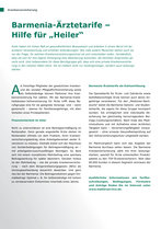 barmenia-ärztetarife hilfe für heiler krankenversicherung barmenia-ärztetarife – hilfe für „heiler“ ärzte haben ein hohes maß an gesundheitlichem bewusstsein und arbeiten in einem beruf mit be- sonderer verantwortung und erhöhten anforderungen. wie viele andere menschen stehen auch sie vor der frage, für welchen krankenversicherungsschutz sie sich entscheiden sollen. verständlich, dass sie sich für ihre eigene versorgung eine absicherung wünschen, die höchsten ansprüchen ge- recht wird. und insbesondere für diese berufsgruppe gilt, dass sich eine private krankenversiche- rung in den meisten fällen lohnt. sie ist vielfach nicht nur kostengünstiger, sondern auch leistungs- stärker. als freiwillige mitglieder der gesetzlichen kranken- und der sozialen pflegepflichtversicherung sowie als selbstständige können mediziner ihre kran- kenversicherung frei wählen. mit der barmenia-krank- heitskosten-vollversicherung für ärzte trifft diese be- rufsgruppe eine für sie geeignete vorsorge. und – wenn gewünscht – ebenso für familienangehörige, mit allen vorteilen eines privatpatienten. finanzierbarkeit im alter nicht zu unterschätzen ist eine beitragsermäßigung im rentenalter. denn gerade angestellte ärzte stehen im rentenalter oftmals vor dem problem, ihren kranken- versicherungsbeitrag ohne arbeitgeberanteil weiter fi- nanzieren zu müssen. deshalb bietet sich der abschluss von sonderbedingungen für beitragsermäßigung an – mit arbeitgeberzusschussfähigen beiträgen. so lässt sich mit einem monatlichen mehrbeitrag eine spürbare beitragssenkung für später absichern. darüber hinaus ist der mehrbeitrag – wie die private krankenversiche- rung – nach dem bürgerentlastungsgesetz (beg) als vorsorgeaufwendung steuerlich absetzbar. und ganz neu bei der barmenia: die beitragsreduktion gegen ein- malbeitrag! optimal z. b. für selbstständige mit hohem zu versteuerndem einkommen innerhalb eines jahres. barmenia-ärztetarife als exklusivlösung die spezialtarife für ärzte- und zahnärzte sowie beihilfeberechtigte ärzte können auch deren an- gehörige vereinbaren. für den „mediziner-nach- wuchs“ bietet die barmenia options- und studen- tentarife, die eigens für diese gruppe konzipiert wurden. sie ermöglichen eine individuelle ab- sicherung bei gleichzeitig hervorragendem bei- trags-/leistungsverhältnis. nach ende des medi- zinstudiums und mit aufnahme einer ärztlichen tätigkeit kann – versicherungsfähigkeit voraus- gesetzt – ohne erneute gesundheitsprüfung auf den vollversicherungsschutz umgestellt werden. im marktvergleich kann sich das angebot der barmenia durchaus sehen lassen. die barmenia krankenversicherung zählt mit ihrer leistungs- starken, speziell für ärzte entwickelten produkt- palette zu den top-ärzteversicherern. weit über 80.000 kunden in diesem segment vertrauen der barmenia. ausführliche informationen wie tarifbe- schreibungen, bedingungen, formulare und anträge finden sie im internet unter www.maklerservice.de.